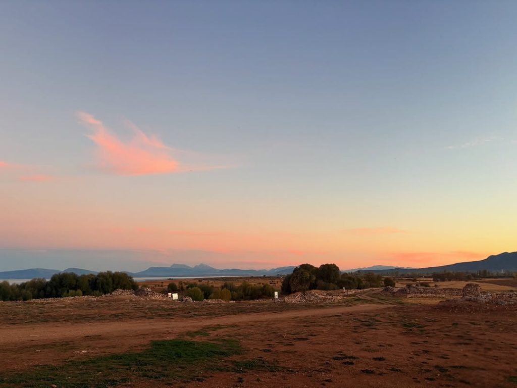 Selçuklu Sultanı Alaeddin Keykubad döneminden günümüze ulaşan Kubadabad Sarayı, bu akşam saatlerinde büyüleyici bir manzaraya ev sahipliği yaptı. Beyşehir Gölü kıyısında batmakta olan güneşin turuncu ve kızıl tonları, sarayın taş duvarlarına yansıdı.
