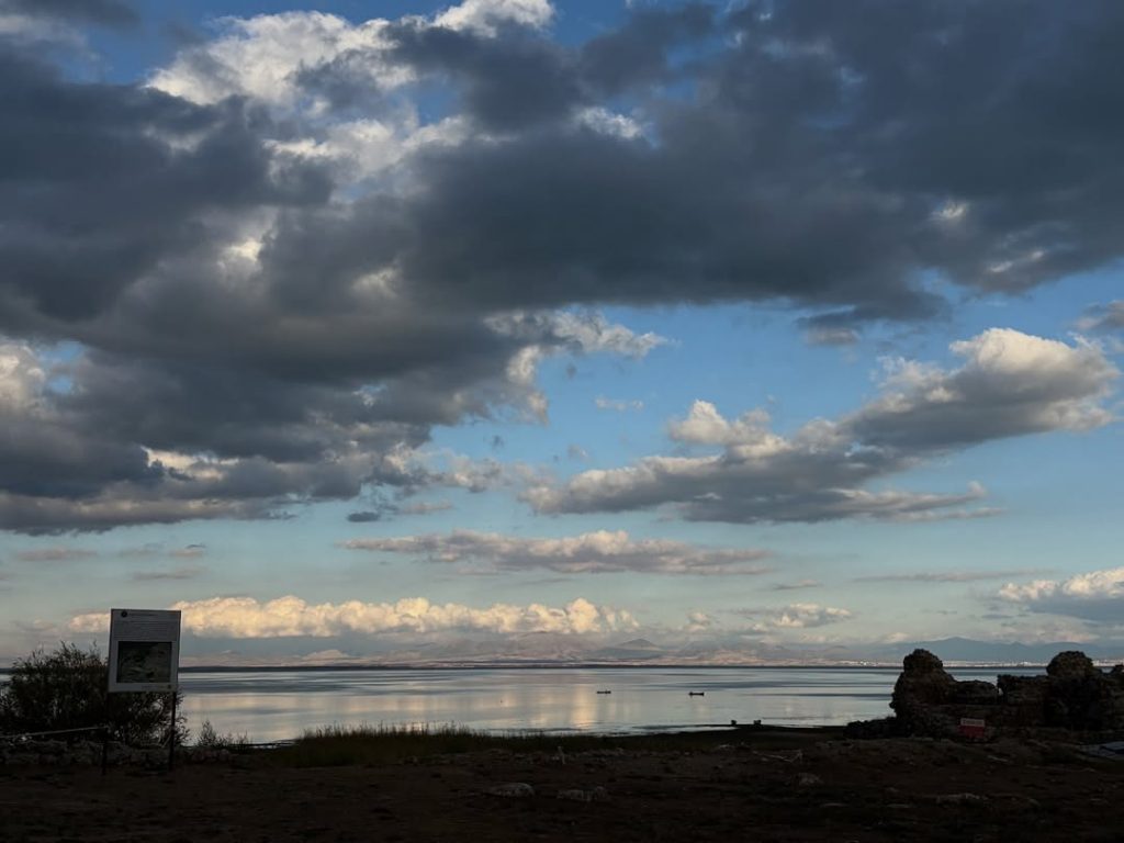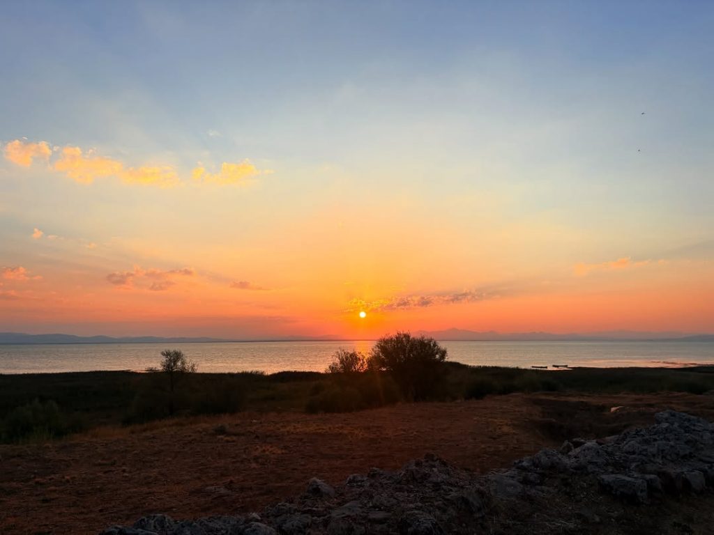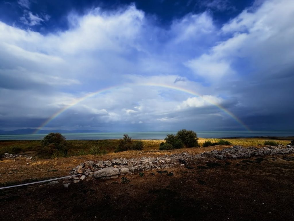 Göl üzerinde yayılan sessizlik, yalnızca kuş sesleriyle bölünüyordu. Güneşin son ışıklarıyla parlayan gökkuşağı, Kubadabad’ın kadim siluetine huzurlu bir dokunuş kattı. Doğa ve tarihin iç içe geçtiği bu an, izleyenlere uzun süre unutulmayacak bir manzara sundu.